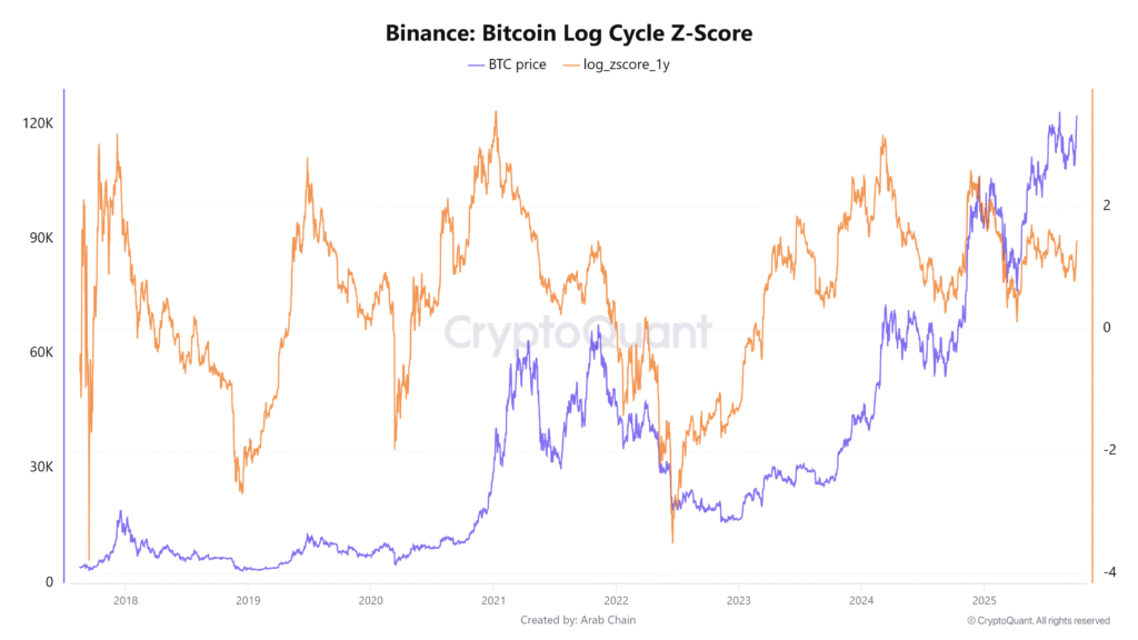 وفقًا لبيانات بينانس، يُؤكد مؤشر Z-Score لدورة السجل أن السوق في مرحلة إعادة توازن قبل اختراق محتمل في أكتوبر 2025.